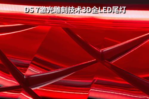 尾部的整体造型简约时尚,尾箱门呈扇贝形,优雅饱满。采用3D雕刻技术的全LED尾灯可以说是继前大灯之外另一处最为亮眼的设计。菱形立体的内部轮廓错落有致、层次分明,个性犀利的设计让它宛若龙鳞,行驶在路面上极具辨识度。不得不说,仅从前后车灯就可以看出设计师赋予DS 7的艺术魅力,爱上它或许就是从车灯开始。