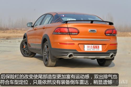 车后尾造型饱满尾部加上了黑色的扰流板突出运动感,但是装饰成分大于实际用途,黑色的下包围配上银色的排气罩点缀让后保险杠不会显得过于沉闷。