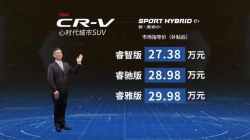 在2020年7月,东风本田第五代CR-V的中期改款车型正式上市,同年的北京车展上,搭载本田最新插电式混合动力系统SPORT HYBRID e+的CR-V锐·混动e+全球首发亮相,使CR-V成为首个涵盖燃油、混动、插混三种动力系统的SUV车型。