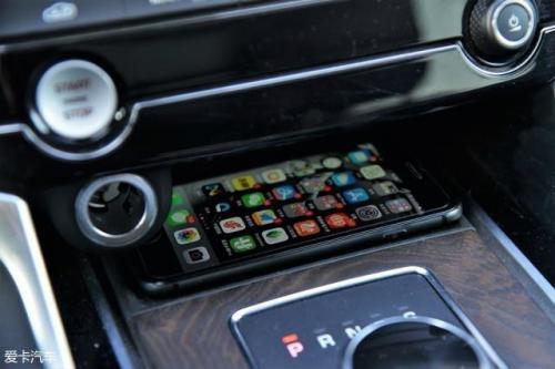 捷豹XFL的储物空间可以说简洁实用,中控台下方设计有一个储物槽,放置钱包、驾照等物品非常合适,大小刚好可以放下一部4.7寸的苹果手机,储物槽底部经过橡胶防滑处理细节到位。