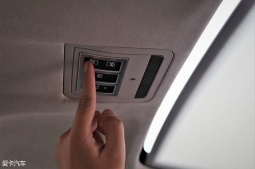 头顶上方,后排乘客同样可以通过控制开关,操控后电动遮阳帘以及天窗等功能。当然,出于安全起见,这些操作都是在驾驶员一侧儿童锁关闭状态下才能进行。