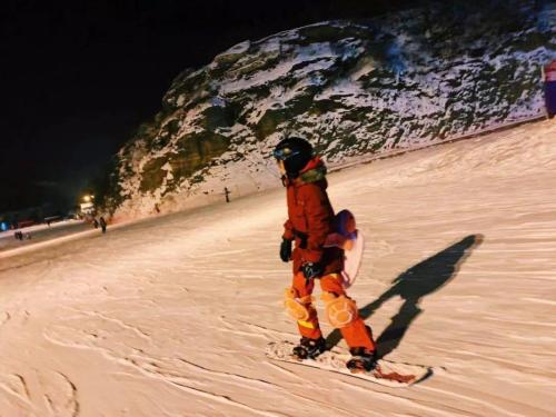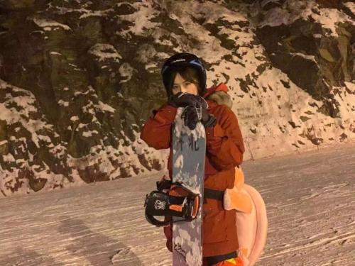 没有装备的人完全不用担心,这里滑雪的一切装备都可以租到。小姐姐因为是第一次滑单板,所以请了一个教练。