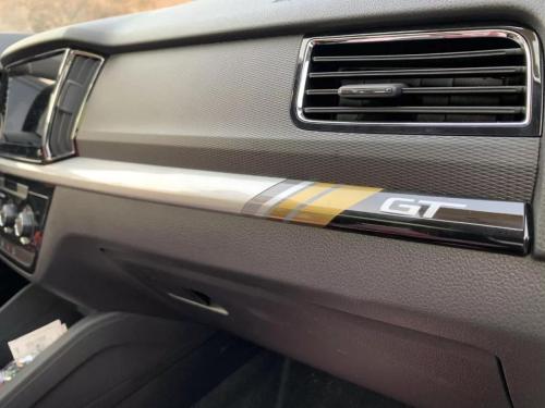 仔细来看,柯米克GT这款车在内饰上也和之前有诸多不同,比如这条和外观一样黄色的带有GT字样的内饰板。