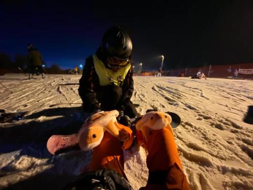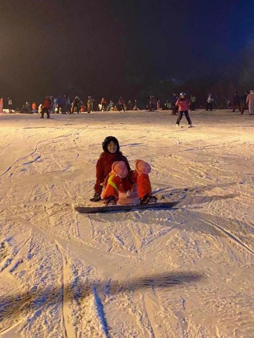最后离开的时候夜色已晚,小姐姐已经精疲力竭,所以坐在副驾驶返程。第一天滑雪圆满结束。