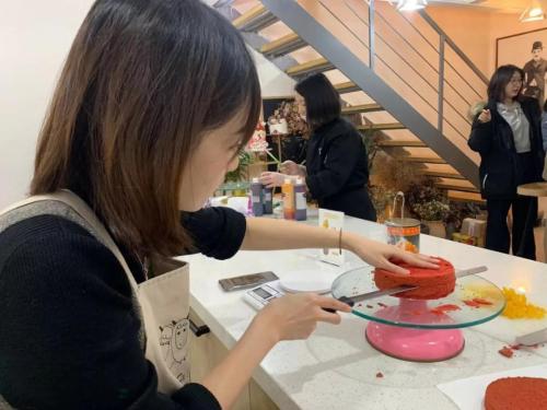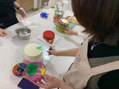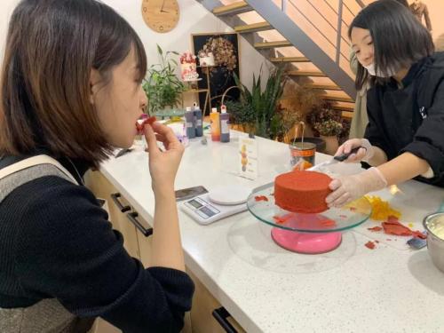 DIY蛋糕店顾名思义就是自己制作自己的蛋糕,现在这种DIY蛋糕生意确实火爆,一个店员同时教两三波顾客。