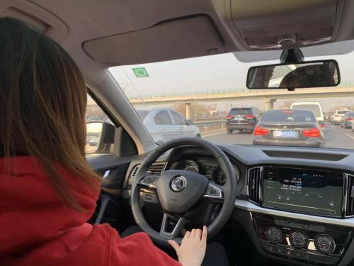 京承高速出境方向,日常拥堵,小姐姐表示柯米克GT在拥堵状态下,方向盘和油门都很轻,开着并不累。