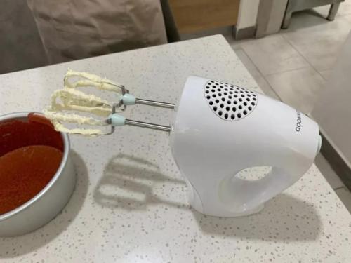 当准备好奶油和蛋糕坯子以后,其实做蛋糕的功夫有点像刷大白。就是把奶油均匀的抹在蛋糕坯子的外边。