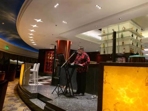 比如这个嗓音不错的驻唱小哥。开始他上场的时候距离我们这个位置。