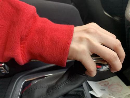 柯米克GT的档把非常霸气,尺寸很大,小姐姐的手刚刚好握住。