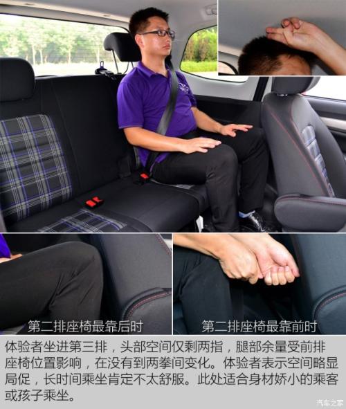 凯翼V3采用的是2+2+3的座椅布局形式。乘坐空间方面,身高170cm的体验者在凯翼V3的前后三排进行体验。前排的头部空间为两拳有余;第二排的头部空间为一拳半,腿部空间在四指到两拳多之前变化;第三排的头部空间有些局促,仅剩两指,腿部空间在没有到两拳间变化。