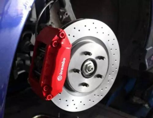 打孔通风盘式刹车通常是性能车的专属,在通风盘式刹车的基础上,对盘面进行打洞,最大程度保证空气流通,在极端驾驶情况下可以提供更佳的散热效果,也正因如此,打孔通风盘式刹车也被很多改装爱好车列为了必备改装项目。