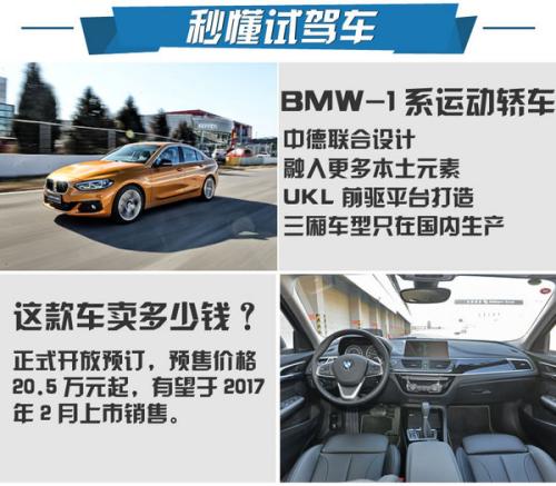 全新BMW-1系运动轿车有几个关键点,中德联合设计调教,从内至外融合了更多本土特点,UKL前驱平台备受关注,此外三厢车型只在国内生产;新车预计将于今天2月份上市;其实综合来讲,如果用中性的眼神去看待它,这一切只不过水到渠成的改变而已,它依然是一辆的纯粹的宝马运动轿车。