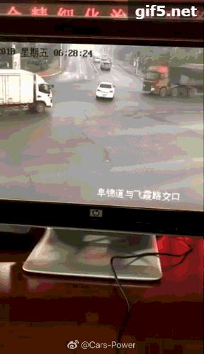 由于过路口速度太快被货车撞飞