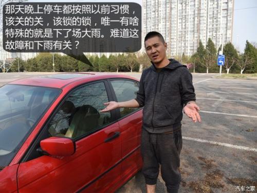 在一个限行和下暴雨的傍晚,博子(用车频道任博)结束在停车场一天的拍摄任务后将唐朝的N手宝马E46仍在原地,因为他急着出差赶飞机。过两天他回来取车时发现怎么也打不着火了,拧钥匙起动机一点反应都没有,油表指针满格,灯光音响都好使,电瓶电量充足,这是怎么回事?