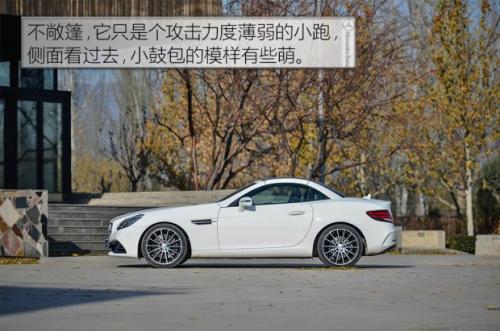 不过现在看来,关闭了顶篷的SLC看起来有点低调,攻击值还不够高,侧面看过去,硬质顶篷的“小鼓包”凸起显得有些萌。这时候,敞开顶篷才是我该做的事。