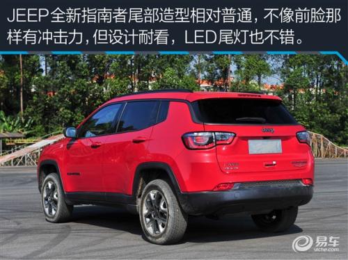 这款车腰线比较高,给人很强的安全感。另外轮拱处采用了黑色装饰条,更凸出JEEP家族越野、男性化的气息,在设计上和那些城市SUV体现出了差别。总体来说,JEEP全新指南者的外观设计富有表现力,比较好看,比自由光更容易让人接受。曾经的硬派越野车都开始变得时尚,比如路虎、比如JEEP,不过从销量上看,这都是正确的变化,在好看的基本上有着不变的价值观,这种感觉很不错。