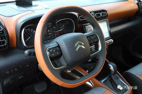 双辐式方向盘采用了很有运动感的D字造型,做工细腻,手感也很舒适。两边功能按键划分清晰,而在三、九点位置的镂空处理则有易于抓握。在之后的驾驶过程中,方向盘的指向非常精准,但阻尼感有些强,虽然这样可以有效避免误操作,不过对于女性司机而言可能上手时需要适应一下。