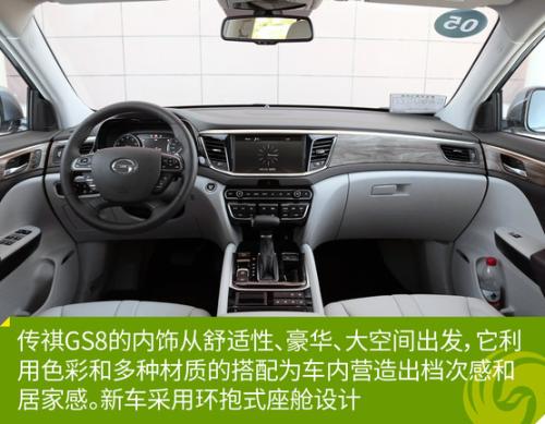 从内部看,多功能方向盘,中控大尺寸液晶屏,显示出新车的科技类配备和互联化水平。GS8还搭载了广汽传祺最新一代智联娱乐系统—In-Joy。该系统包液晶仪表、哈曼10寸液晶大屏,以及智能手机互联系统。