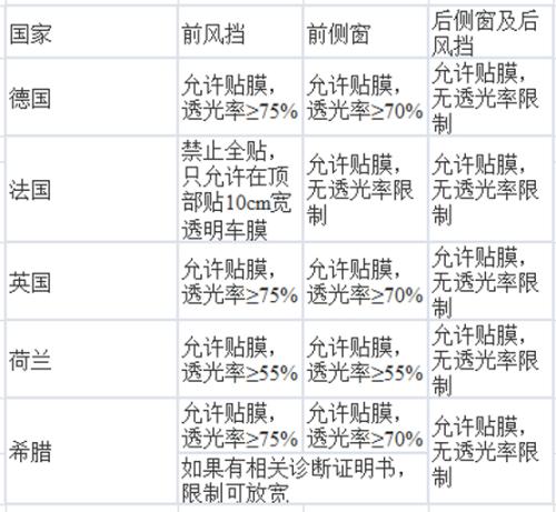 欧洲各国汽车贴膜法规: