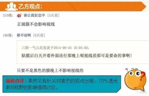 在众多网友的评论中,还有两个大家关注的问题值得讨论:汽车贴膜有没有防爆效果?汽车贴膜会不会影响车内逃生?对于这两个问题,网友也给出了各自不同的观点。