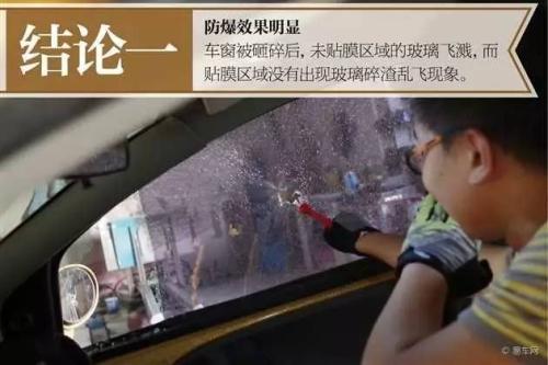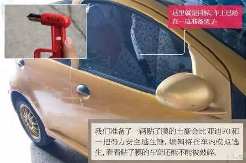 总结:通过砸车窗逃生实验,我们验证了汽车贴膜的防爆性能以及汽车贴膜对车内逃生带来的影响。所以在这一方面,汽车贴膜是一把双刃剑,想要很好的防爆性能就需要承担车内逃生困难的风险,反之亦然。不过,编辑在此强烈建议:如果你根据自己的需求选择了贴膜,一定要在前侧窗保留三角窗,一方面可以保证后视镜良好的视野,另一方面就是保证自己在遇到突发情况时可以顺利逃生,优先砸侧窗未贴膜三角区域。当然,车内需要备一把安全逃生锤。