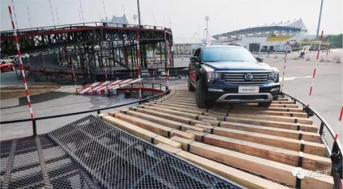 此次我们乘坐体验的是有越野大侠之名的传祺GS8,它搭载了极强的四驱系统与全地形反馈系统,为这个「大家伙」提供了稳健的操控,让它能够轻松通过涉水池、侧坡、坑洼路、交差轴、阶梯路等复杂路面。