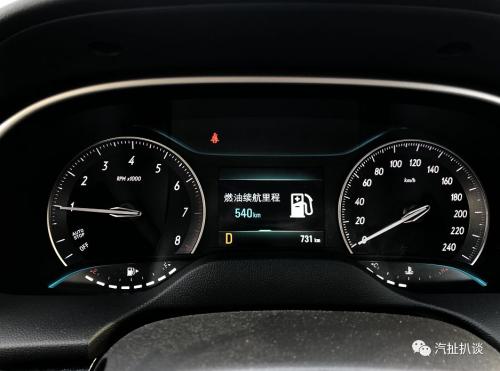 出发之前,韩老师先到家附近的加油站将油箱加满,并且把小计里程A/B、平均油耗、平均速度全部清零。英朗的油箱容积为44L,在同级家用车中属于中规中矩,当油箱加满至跳枪后,我们可以看到它的燃油续航里程可以达到540公里。
