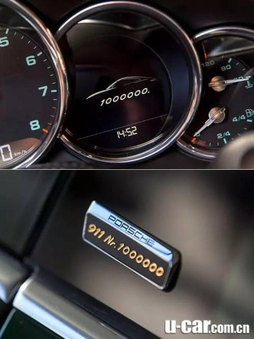 这辆Carrera S的仪表盘以及前翼子板,都有第100万辆的标志,张扬的诉说着本车的独特性