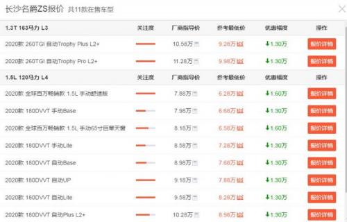 动力方面,2020款名爵ZS提供1.3T/1.5L两款发动机可选,传动方面,1.3T与之匹配的是6挡手自一体变速箱,1.5L与之匹配的是5挡手动和CVT无级变速箱,其中,1.3T的发动机,最大马力可达163匹。实际驾驶感受中,名爵ZS加速的时候,前段会感到有些过于猛,不过后续会平稳起来,油门反应还算灵敏,基本上踩下去多少就有多少的反馈,但是,行驶的质感还需要一定的提升,整体而言,日常家用的话,名爵ZS还算是不错的选择。