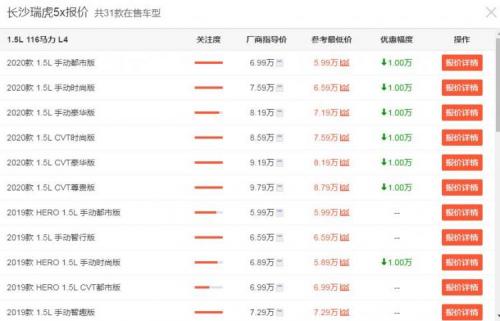 动力方面,2020款瑞虎5x提供1.5L/1.5T两款发动机可选,传动方面,1.5L与之匹配的是5档手动和CVT无级变速箱,1.5T与之匹配的是CVT无级变速箱,其中,1.5T的发动机,最大马力可达156匹。整体而言,瑞虎5x的表现还算不错,只不过不少车主表示,瑞虎5x起步的时候有点肉,并且悬架减震不是很舒适,尤其跑高速的时候,胎噪声很大。