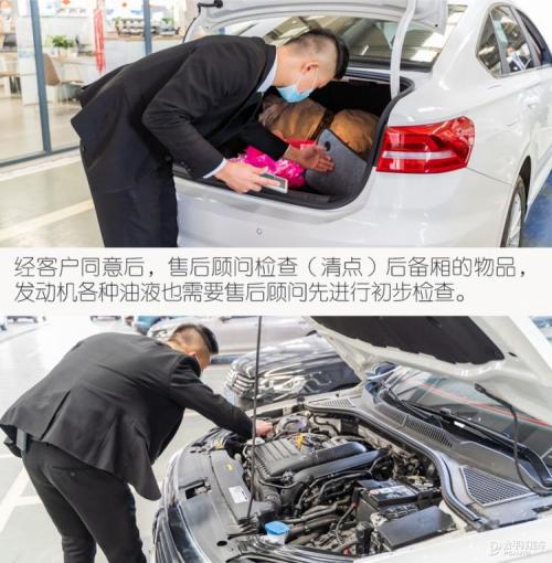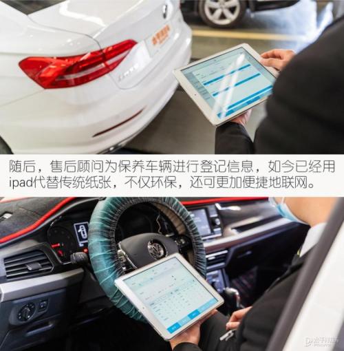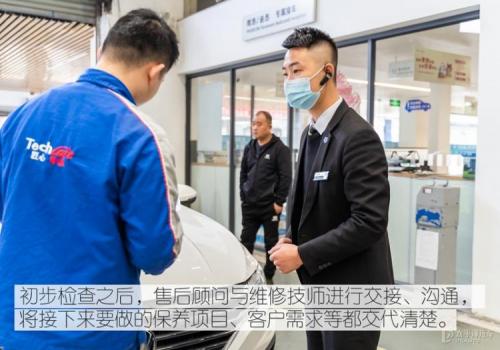 当维修车间比较繁忙时,售后经理就会将保养分成两大部分,首先是初步检查,售后顾问与维修技师共同完成,主要是登记车辆信息、初步检查车辆状况等。然后再进入正式保养环节,由两位维修技师合作完成。目前的情况就属于比较繁忙的时期,不过最后发现,整个保养也在60分钟内完成,速度之快、效率之高,果然是上汽大众。