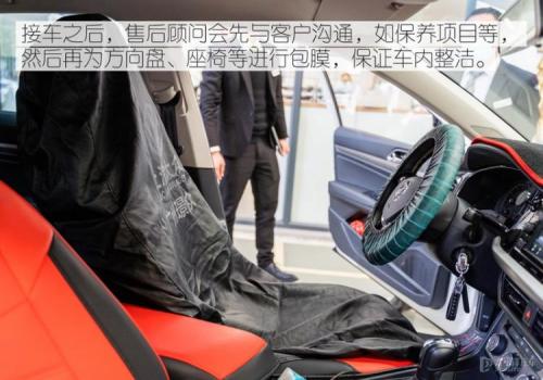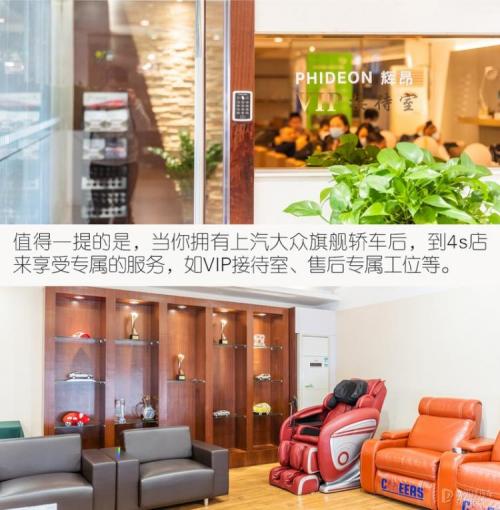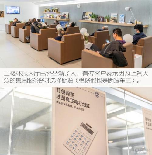 进入上汽大众4S店园区,就有工作人员前来接待,如果是来看车就引导到展厅前的停车场停车,如果是保养、维修的就引导到售后服务接待处。这次我们来保养,与售后顾问沟通之后就进行保养流程,同时笔者还体验一番上汽大众的休息室。