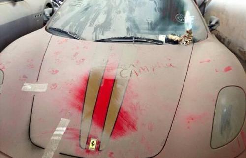 下面看看这些豪车,第一辆,法拉利430,价值4502万左右,如今也是灰尘遍布,应该放了有一段时间了。