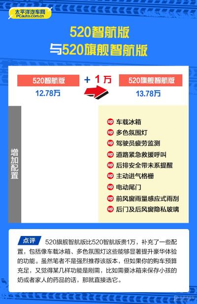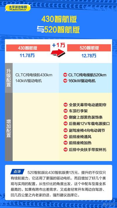 当然,对于少部分的预算有限且主要用于市区通勤的消费者而言,430智航版可能更合适;预算充足且对舒适和安全要求更高的消费者,则直接买520旗舰智航版。(图/文/摄:太平洋汽车钟家莹)