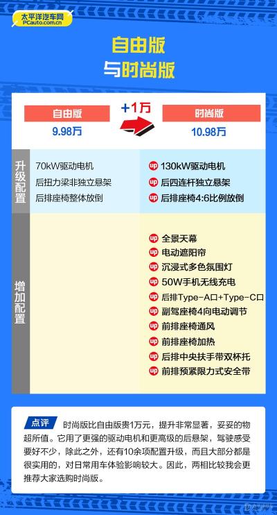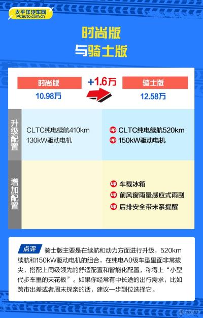 海豚智驾版通过平台架构赋能和智能化升级,让一台A0级纯电车告别“通勤够用”,走向“精品享受”。入门的自由版产品力就已经比肩一些同级别的高配车型,作为城市通勤车或者接娃送娃车,算得上高规格体验;而如果从性价比的角度出发的话,那么中配的时尚版是最均衡且最值得推荐的,是大部分消费者的理性选择;高配的骑士版则是面向对长续航、车载冰箱有需求的用户。