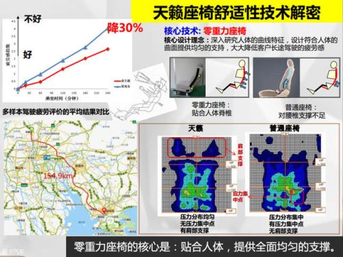 如图为东风日产天籁的座椅,看似很普通,其实当中每一个角度和弧线都经过了反复的精准计算,以求达到完美的零重力效果。