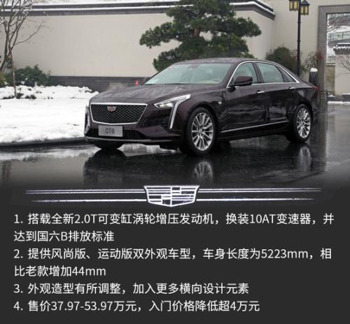 总结:从产品角度出发,新款CT6在外观动力等方面均有变化,将其称为全新换代产品也不过分。而全新动力总成,特别是10AT变速器的加入给新款CT6的驾驶体验带来更加细腻的行驶质感,整体驾驶感受给人稳重求进的运动姿态,响应及时换挡丝滑。另外,双外观的加入也将给消费者带来更多选择的空间,相比老款车型入门售价下调了4万余元,再加上用大型车的尺寸身份来对抗中大型市场竞品的差位竞争,最终都将会成为新款CT6的优势和卖点。