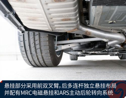 另外,悬挂的表现很有韧性,没有硬邦邦的机械感,但也并非纯粹的舒适取向,在一定范围程度下,底盘都能有效过滤细微的振动,包括坑洼路面、减速带等。与此同时,在做紧急变线、高速过弯动作时,也将提供充足的支撑性能。而这一切与其配备的MRC主动电磁悬挂不无关系,这套系统能以每秒1000次的频率扫描地面,实时调整最合适的软硬程度。