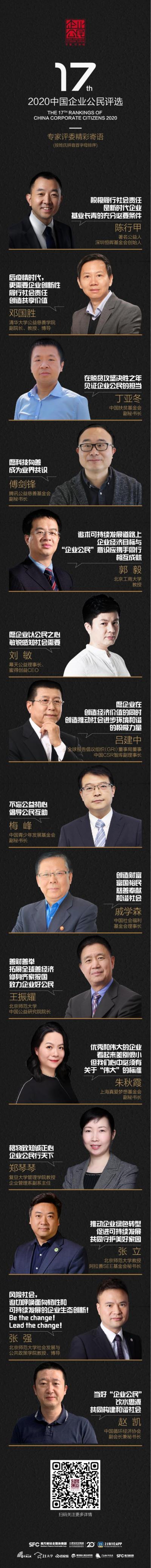 由《21世纪经济报道》举办的2020年中国企业公民评选活动,自今年4月启动以来,一直处于持续的进展之中。为了更好地完成今年的评选工作,我们扩展了评委阵容,邀请更多CSR及公益界领袖成为2020第十七届中国企业公民评选的评委。每一位评委都为我们的评选活动送上了寄语,表达他们对当前形势下CSR及企业公益活动的希冀。