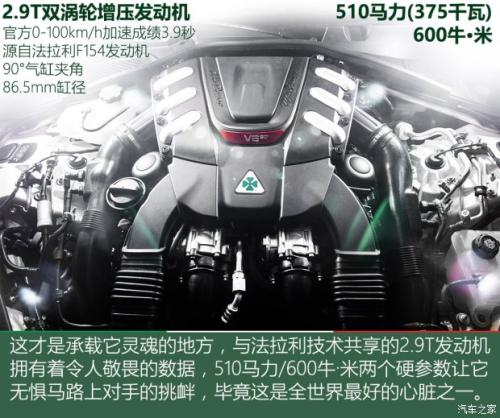 从之前的猜测都后来官方证实,这台有着暴力数据参数的V6发动机正是法拉利California T那台3.9T V8发动机减掉两个气缸而生的产物,相同的气缸夹角和缸径以及两颗IHI涡轮,还有闭缸技术,同时内部有大量的锻造增强部件。它在2000rpm左右就可以全力输出,有人开玩笑说这可能是你最容易实现的法拉利梦。和M3与C 63相比它这台发动机话题性更高,比如开着那两台车,朋友上来以后你会对他说有多少多少马力,加速几秒之类的,而Giulia四叶草,只需要告诉坐你车的朋友它的心脏是法拉利的,别的不说你的朋友也就懂了。