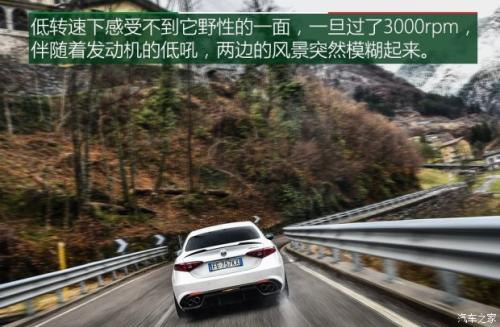 每一次即将入弯之前,我都会提前进行降挡,充满期待的听着身后噼里啪啦的回火声音,Giulia四叶草的排气没有那么暴躁,和同属意大利的玛莎拉蒂相比它显得更为羞涩,但对于驾驶氛围的营造可一点不差。打开排气阀门在隧道里轰油,依然可以让你很兴奋。尤其是转速突破3000rpm的时候,我会越来越清晰的听到身前这台来自法拉利心脏的工作声音,这时你会庆幸碳纤维发动机盖没有隔音棉,能够把这声音更清晰的释放出来。它不像是C 63 S V8发动机那种非常有磁性的怒吼,这台V6发动机的声音更高亢。随之而来的就是源源不断的动力,官方0-100km/h 3.9秒的加速可不是闹着玩的。