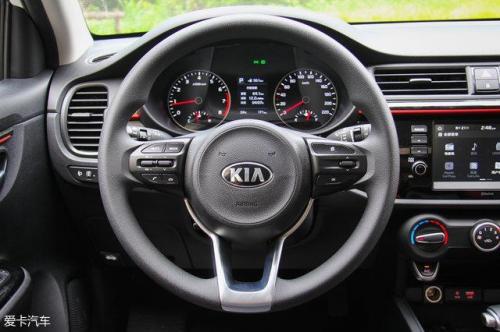 真皮多功能方向盘也采用了起亚的“家族式”设计风格,看起来很漂亮,握感也很细腻舒适。