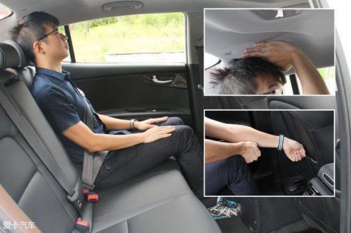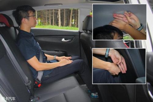 体验者来到后排,头部空间依然剩余1拳2指,腿部空间则达到了1拳3指。