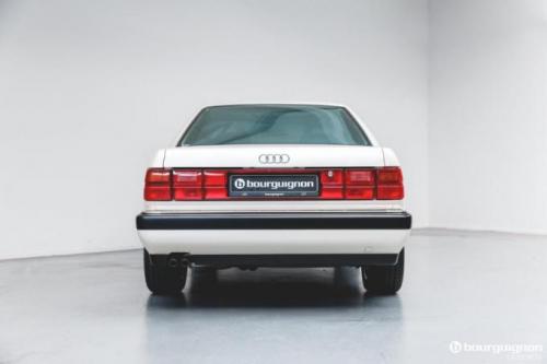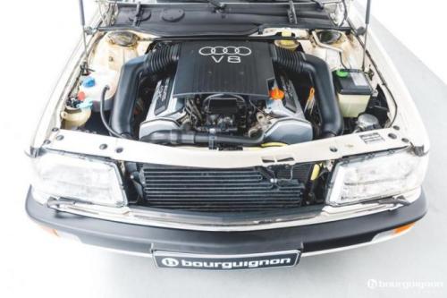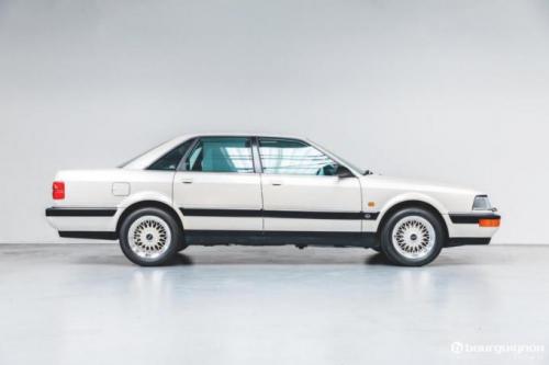 这辆珍珠白色的奥迪V8(3.6L)生于1990年,这款奥迪V8将珍珠白色的外观(甚至连轮圈都是珍珠白色)与黑色皮革内饰和木饰件相结合,即使经过了30年时光,依然流露着雍容庄重的贵气。