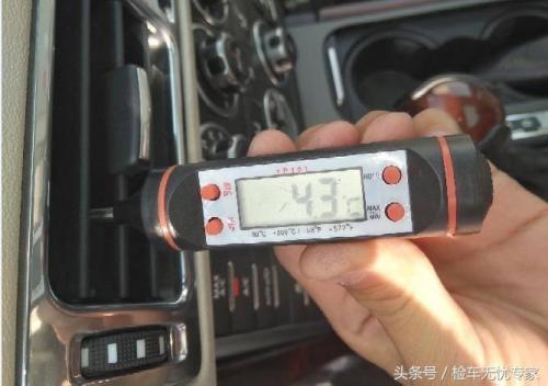经空调温度仪检测,空调温度显示4.3度,制冷效果极佳!中控经过检测各项按钮均可正常响应,反应灵敏度也很高