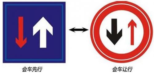 “会车让行”是交通禁令标志的一种,表示车辆会车时,面对标志的车辆必须停车让对方车辆先行。