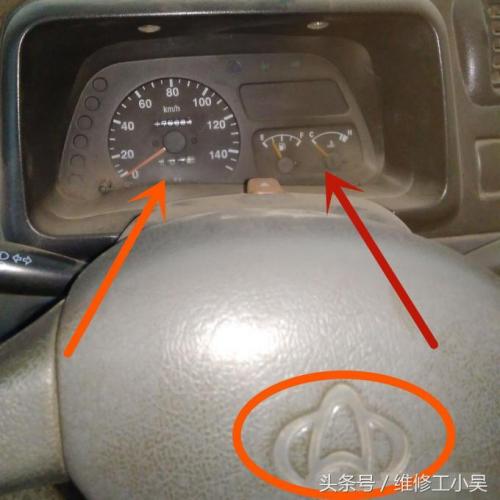前段时间,一位老长安面包车的车主就遇到了发动机抖动的问题,车主反应的问题是发动机怠速抖动,加速没问题!最后,汽修师傅仅仅是换了一个怠速电机就解决了这个问题。本来一个怠速电机就能解决问题,汽修师傅却抱出了一大盒怠速电机,足以说明这类车的怠速电机出问题这种情况是比较常见的!本文我们就来了解一下这个比较常见的问题!下图所示的就是这辆怠速抖动的长安面包车,橙色箭头所示的是它的车速表,红色箭头所示的是油表和水温表,它没有发动机转速表。