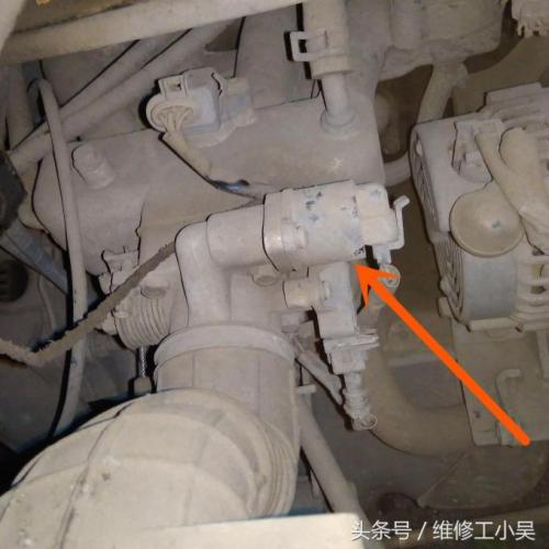 下图箭头所示,这就是发动机的怠速电机!它的主要作用就是在发动机怠速时起作用,如果它过脏或者是内部损坏,就会导致发动机怠速抖动!