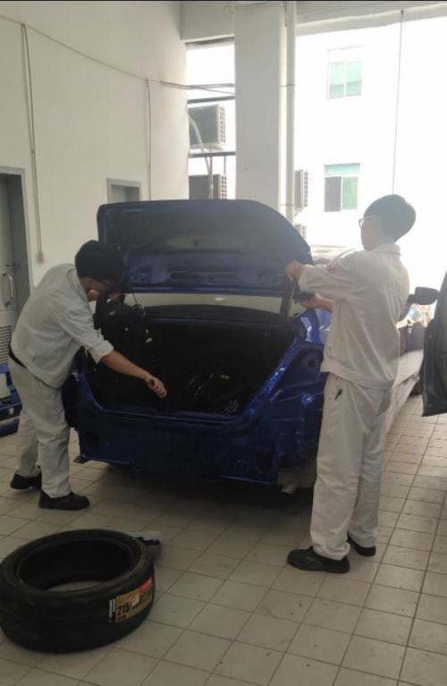 如上图,后备箱门已经换上,是原厂还没喷漆,看上去整体的质量还可以,原厂的东西应该都还不错的。