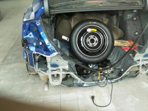 第四张图是还没维修之前把防撞梁给拆下来的,思域后尾箱,起看上去没有损害重要的结构,其实后尾箱跟防撞梁给撞坏了。